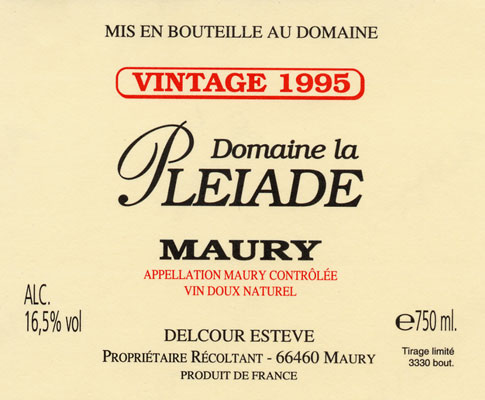 Robe lumineuse d'un brun acajou aux reflets cuivrés. Nez très agréable, complexe ; en 1er, notes animales de fumet de viande qui disparaissent à l'aération, puis s'offre à nous toute la palette des rancios : caramel, fruits à l'alcool, kirsch, prunes, épices douces, piment, safran. Attaque vive qui donne beaucoup de tonicité au vin ; la bouche est puissante, chaleureuse, sans être brûlante, les tannins sont domptés ; l'ensemble nous donne un magnifique Maury qui devrait faire un accord parfait avec un foie gras aux épices. |